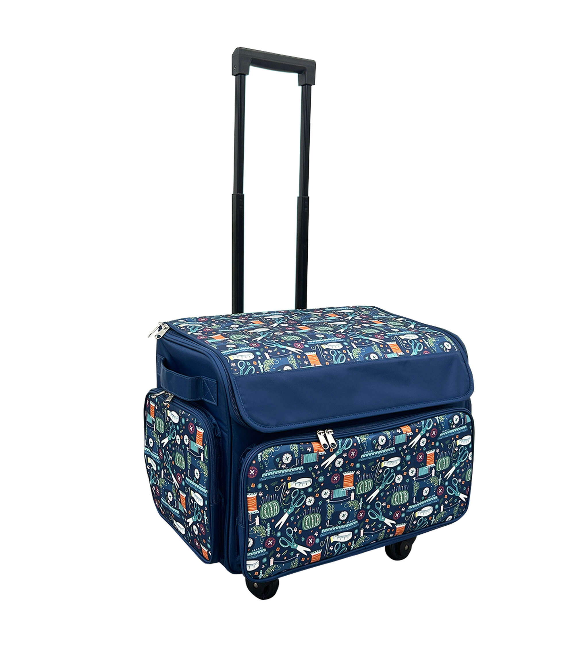 Blue Floral Rolling Sewing Storage Tote by Top Notch