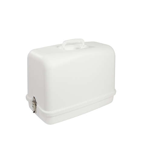 Singer Universal Carrying & Storage Sewing Machine Case is made of impact-resistant plastic. It fits most brands of free-arm sewing machines and small overlock machines. Lightweight, yet durable, it's great for travel. This sewing machine case provides dust-free storage for machines not in use, and features safety 'sure-lock' metal latches, as well as a built-in handle.