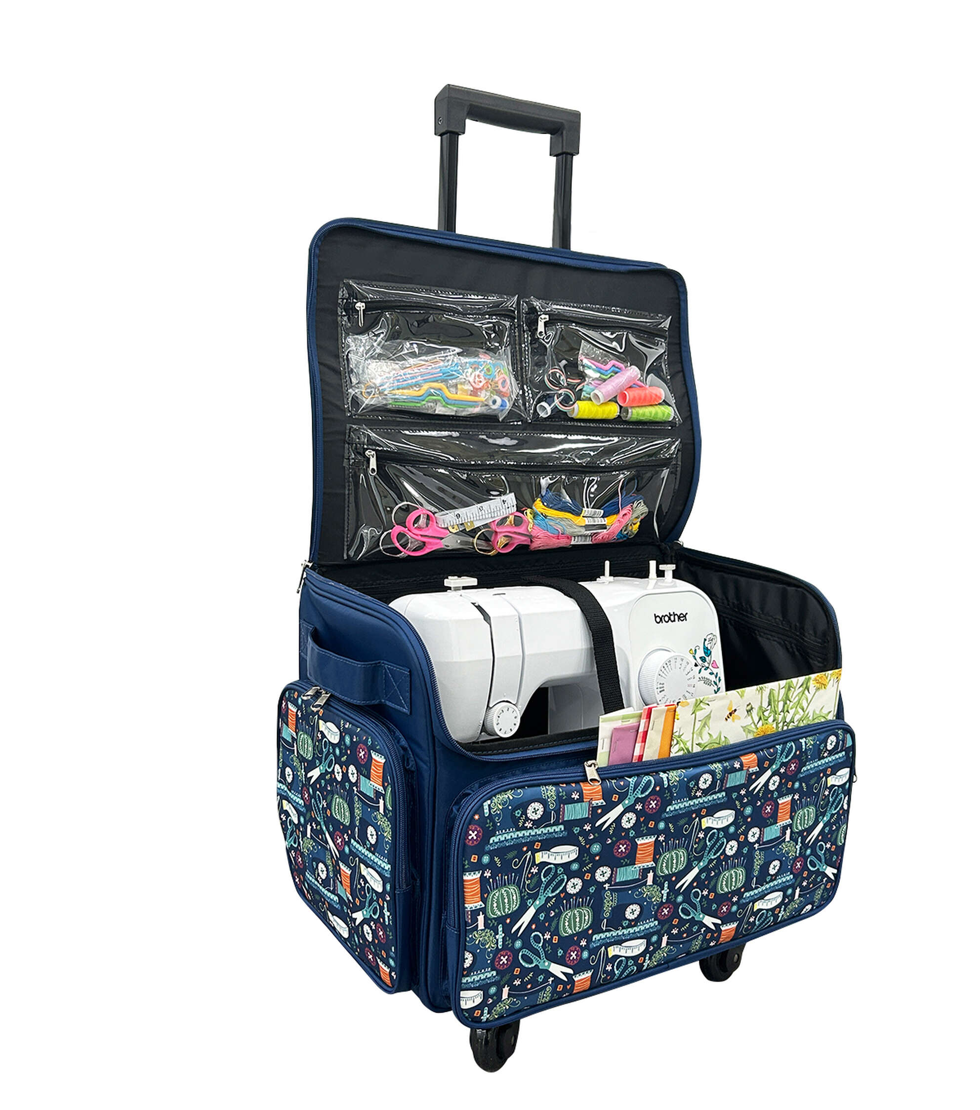 Blue Floral Rolling Sewing Storage Tote by Top Notch