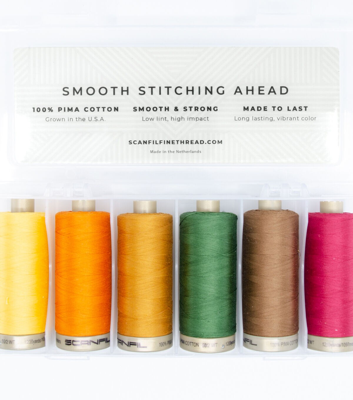 SCANFIL Pima Cotton 50 Wt Thread 1200 Yds 6ct and Storage Box Harvest