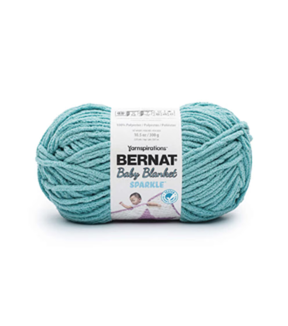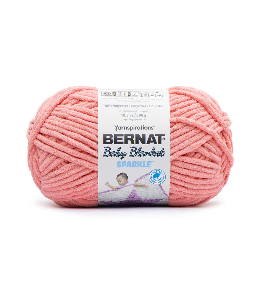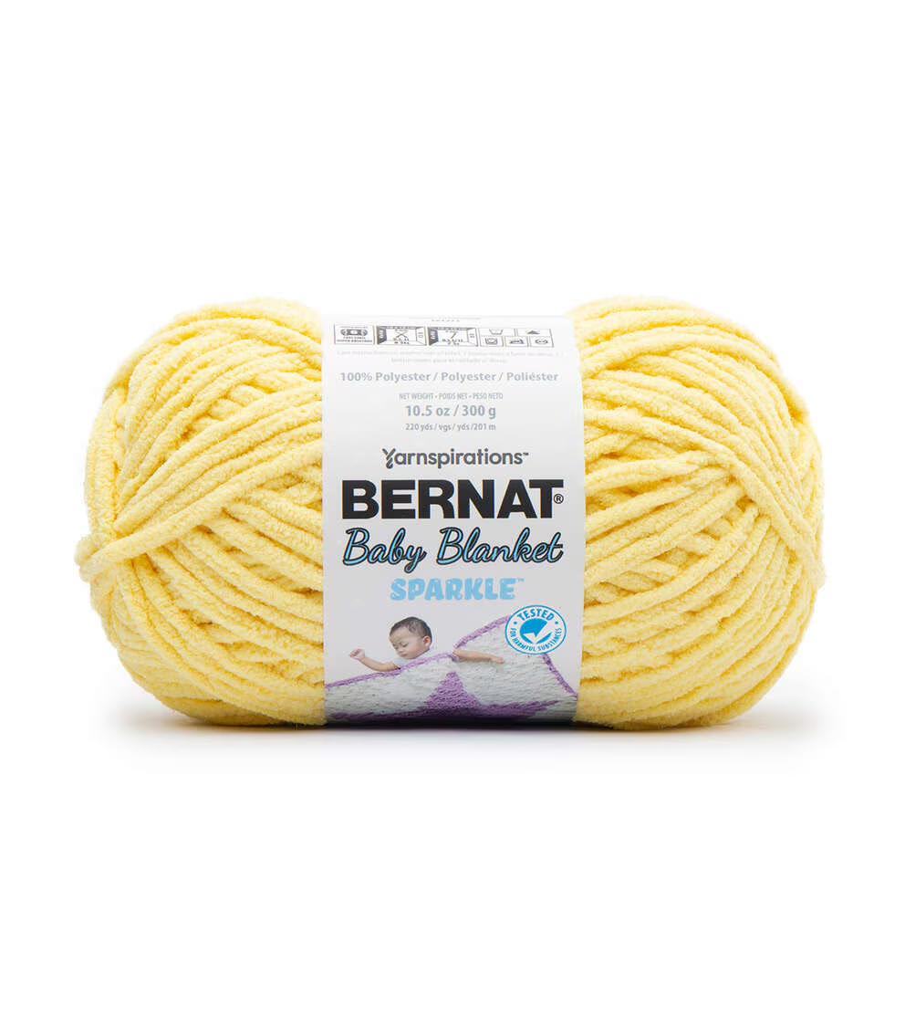 Bernat Baby Blanket Sparkle is the newest member of the Bernat Baby Blanket family. With the same machine washable 100% polyester fiber as Bernat Baby Blanket, this super bulky yarn stitches up quickly. The new safe for baby sparkle adds an extra special flair to any baby project made with Bernat Baby Blanket Sparkle and coordinates wonderfully with any of the other Baby Blanket yarns!