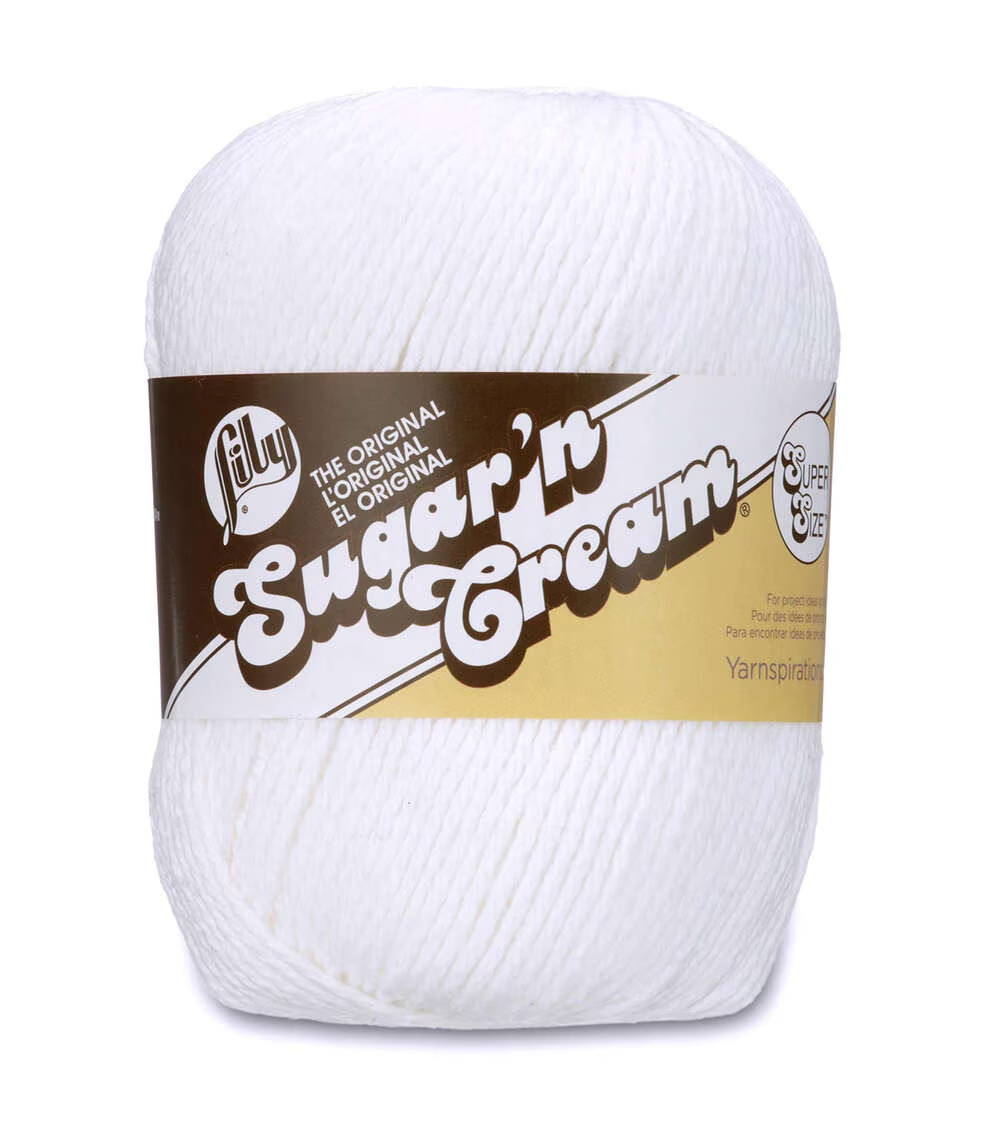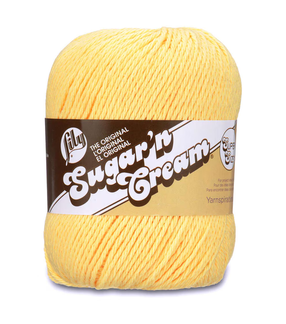 Lily Sugar'n Cream Super Size Cotton yarn is a natural, 100% USA-grown cotton yarn. The perfect choice for your knit and crochet home decor needs. Lily Sugar'n Cream is a versatile worsted weight yarn, that’s great for small projects like dishcloths and potholders, to home decor staples like afghans! Available in a wide variety of shades, including neutrals, brights, and pastels. Conveniently machine washable and dryable for easy care.