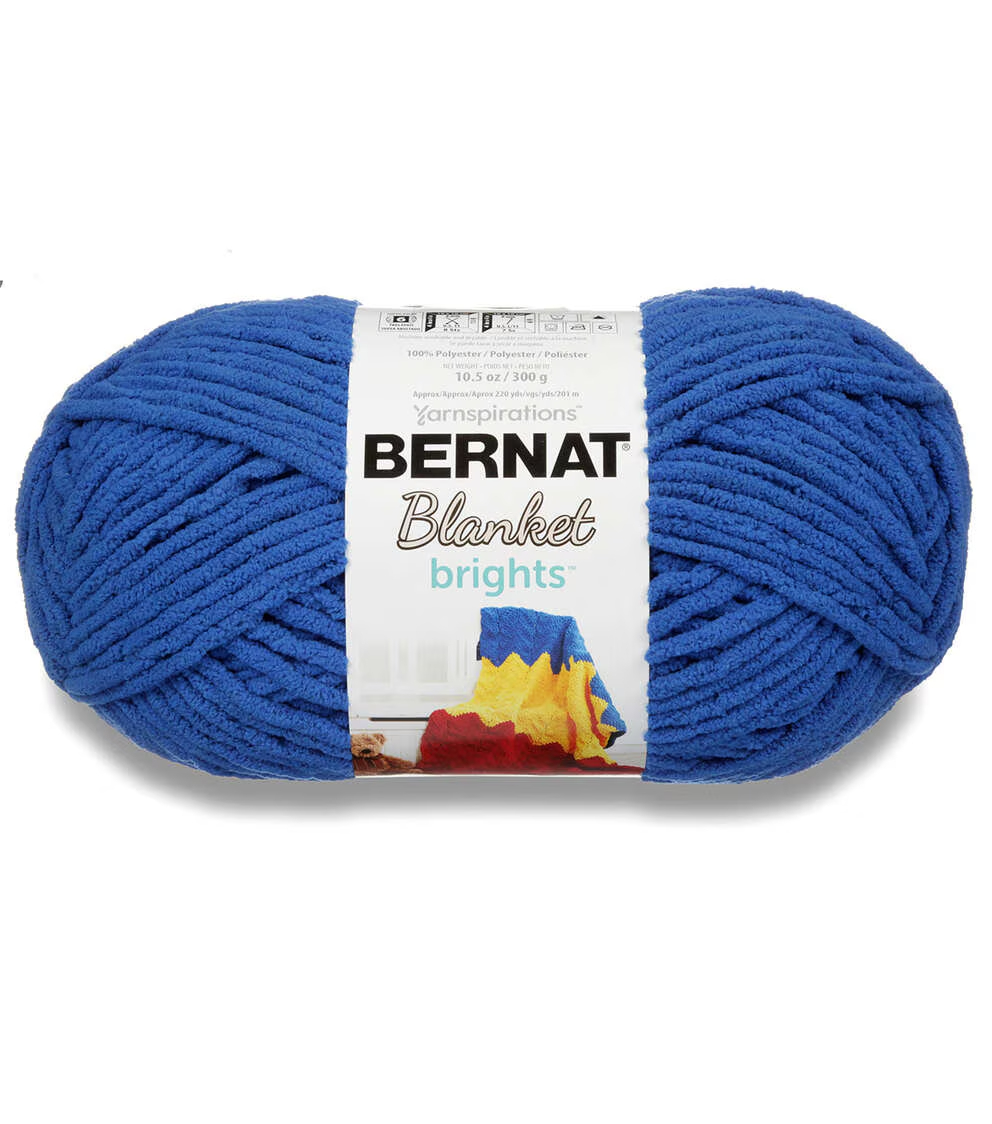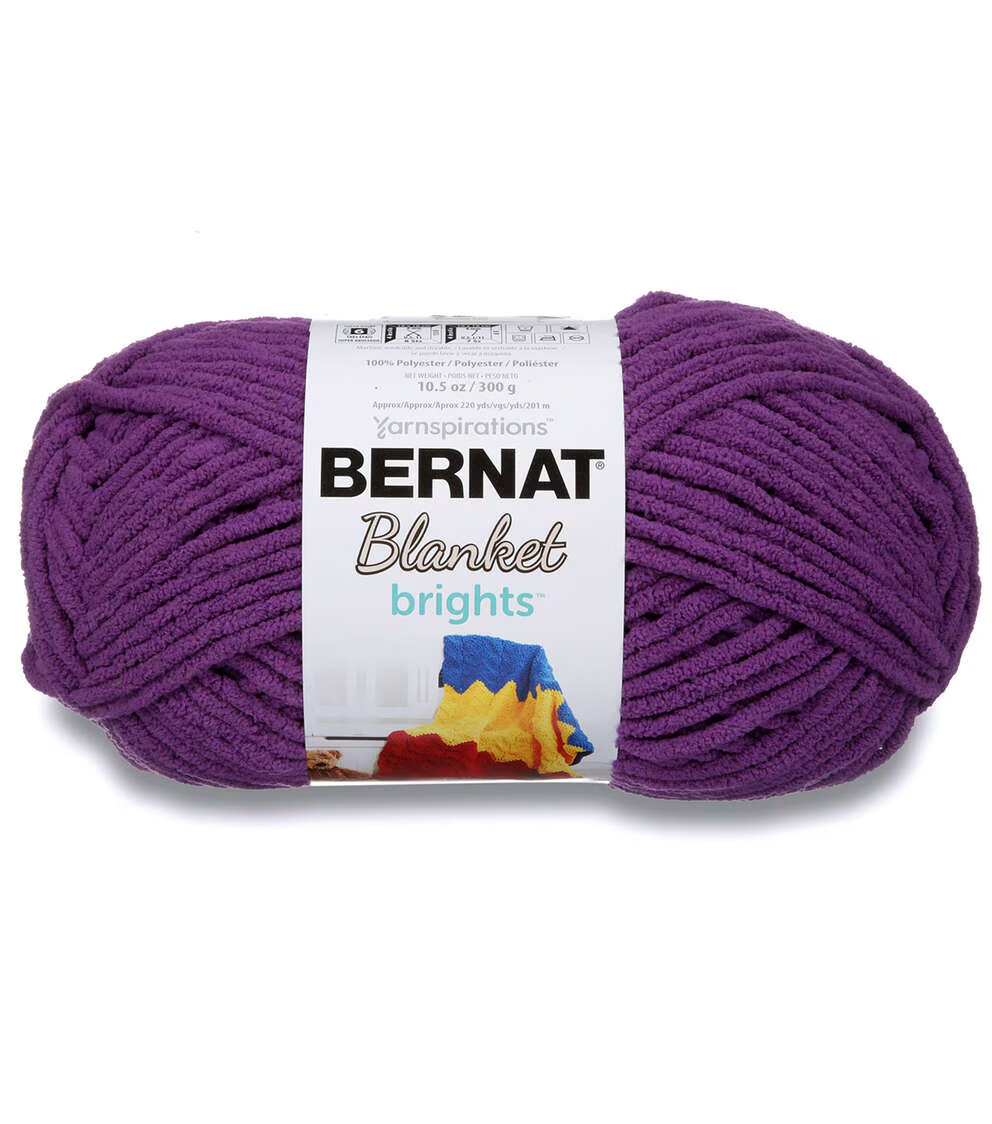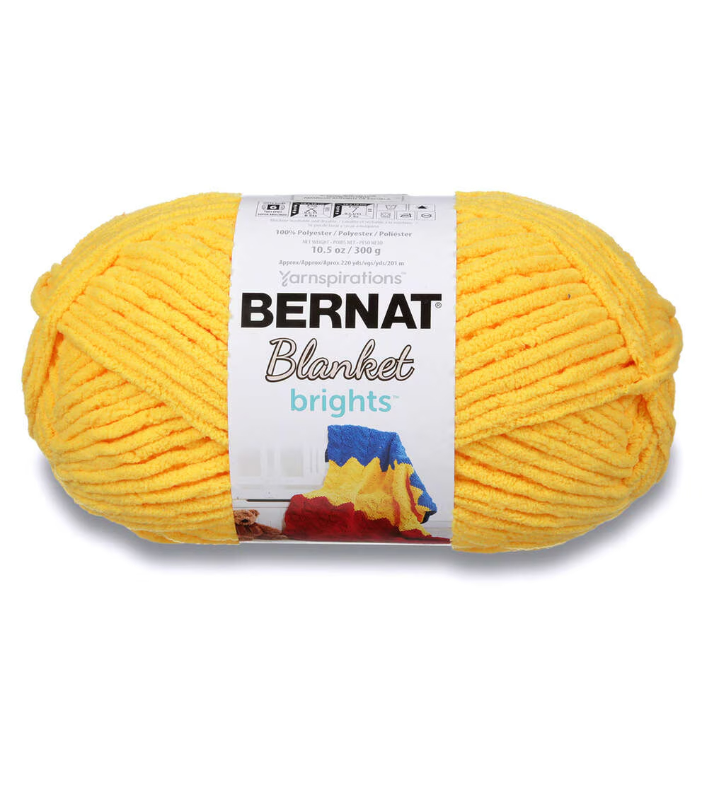 A luxurious, soft and cozy yarn, Bernat Blanket Brights is a chenille-style yarn that’s perfect for home decor projects. From blankets, to crochet baskets, Blanket Brights is ideal for a wide range of projects. It’s super bulky weight stitches up quickly, making it a great choice for afghans and blankets. Available in a new range of bright shades to compliment your home decor. Conveniently machine washable and dryable for easy care.