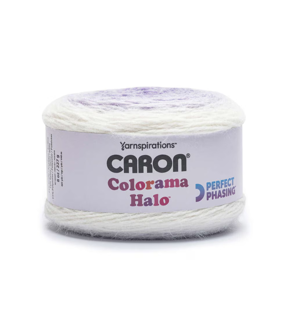 Caron Colorama Halo is a soft, luxuriously textured yarn with a beautiful soft ombre shade range. Consumers will love stitching up cozy shawls, sweaters, and accessories worry-free as the texture can help disguise any stitching mistakes.